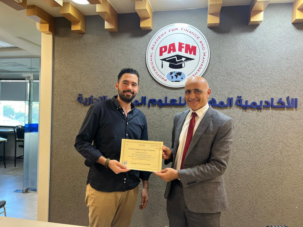 الأكاديمية المهنية للعلوم المالية والادارية تبارك للمتدربة المميزة بيسان عابد إنهاء دورة محاسب مالي محترف PFA وتتمنى لها مزيدًا من التقدم والنجاح