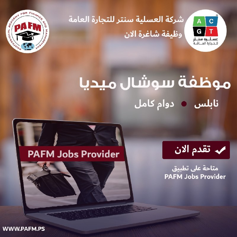 على من يجد في نفسه الكفاءة والرغبة في العمل التقدم للوظيفة في أقرب وقت من خلال تطبيق PAFM Jobs Provider.